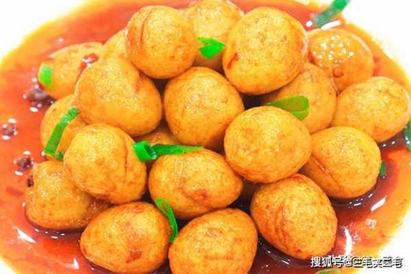 锅内烧油、油温五成热时倒入鹌鹑蛋,开小火炸制、轻轻地搅动让鹌鹑蛋均匀受热,鹌鹑蛋表面起皱、呈金黄色时倒出来控油。