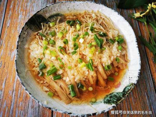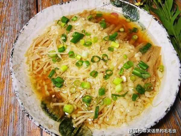 另外金针菇中含有丰富的氨基酸,而这些氨基酸很多都是人体必需的,家里有孩子的可以让孩子多吃些金针菇,能够很好的补充锌元素,从而提高孩子的智力发育和身高发育,令孩子头脑聪明,个子长得快,我就非常喜欢吃金针菇,家里人也爱吃,常常隔几天就会买一次,它放在冰箱几天也不会坏,我家常常用金针菇来炒菜,孩子都吃腻了,说妈妈,能不能换种做法,自从学会了这道金针菇做法,孩子总是点名要吃,一边吃一边说好吃,真的是很有成就感呢,我们今天给大家介绍的这种金针菇吃法呢,既不是煮火锅,也不是炒着吃,而是直接上锅蒸,非常简单快速,营养成分得到极大的保留,吃起来味道更鲜美爽口,食材只会用到金针菇和大蒜,以及一些调味品,做饭新手也能轻松掌握,这菜我家一周会吃好几次,孩子大人都喜欢,下边就把做法分享给大家。