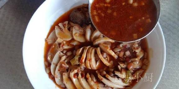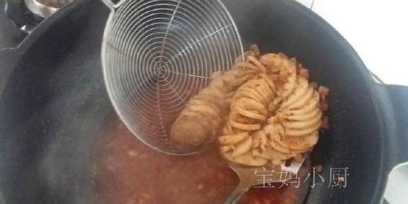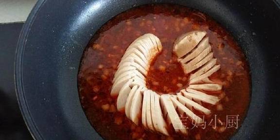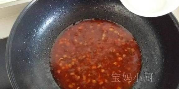 10锅中汤汁勾入水淀粉,使汤汁更浓稠,亮出红油
