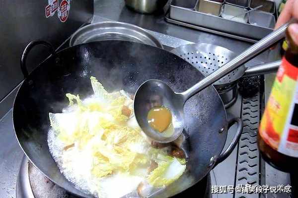 然后往锅中倒入适量的开水,放入白菜、金针菇和香菇,加入食盐2克、白糖2克、料酒5克、鸡汁2克调味。