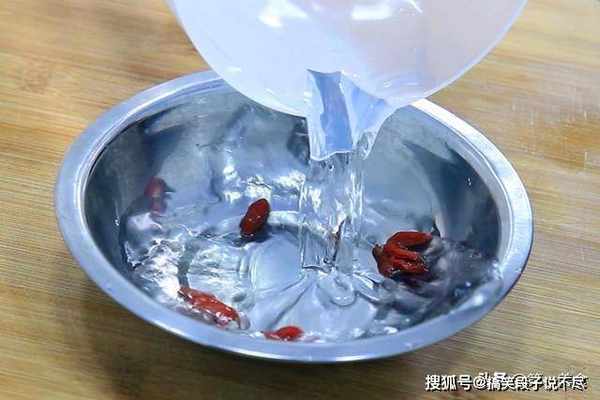 再准备适量的小葱、切成葱花;几粒枸杞子用清水泡上。