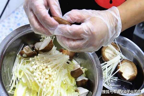 洗干净以后把香菇掰成小块,金针菇打散,白菜也掰成块,用手掰开的食材边缘不规则,方便入味。