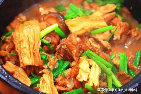 锅内再烧油,油烧热以后倒入葱、姜、蒜等小料一起翻炒出香味,把鸭块倒入锅中继续煸炒3分钟左右,把鸭块中的水分炒干,鸭肉炒香、炒变色。然后淋入老抽3克上色,倒入一罐啤酒、适量的清水没过鸭块,再放入香菇和炸好的腐竹,挑出葱段,加入生抽10克搅拌均匀,大火烧开以后转小火焖煮30分钟。