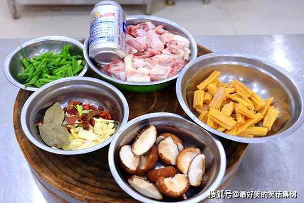 鸭子洗净、剁成均匀小块;香菇洗干净对半切开;几根小葱切成段,把葱白和葱叶分开;生姜切成片,大蒜也切成片,和葱白放在一起,再抓入一小把干辣椒,一粒八角,两片香叶,一节桂皮;另外准备一罐啤酒备用和适量的腐竹备用。