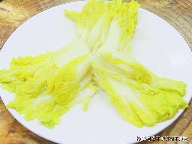 锅中烧水,水开后放入娃娃菜,在水中煮30秒捞出,放在盘子里摆好;再次把水烧开,然后放入准备好的配菜,在水中焯10秒后捞出沥水。