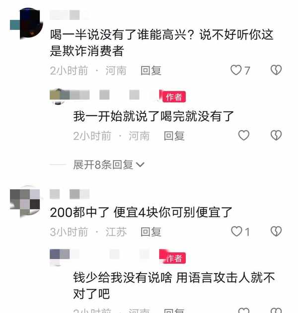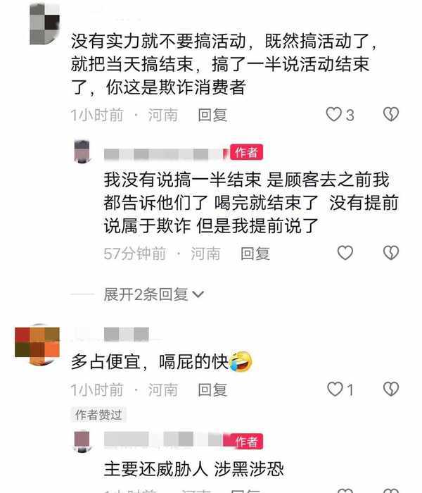 “这家门店的老板真没诚信,做不起活动就不要做了,让人进去喝了4瓶酒就没了”
