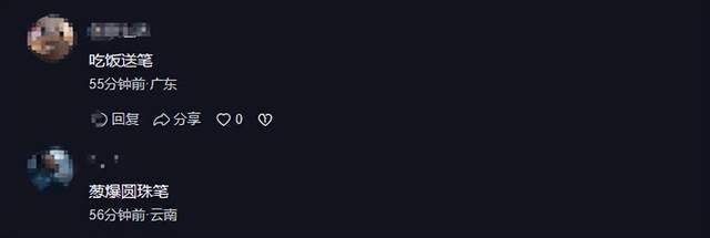 对此,网友也调侃称“特色菜清炒圆珠笔”,“吃饭送笔”,“葱爆圆珠笔”。