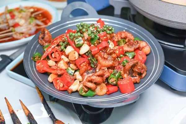 来这里朝歌秘制田螺、网红干煸龙虾尾一定是你能吃到的和别地儿都不一样的独家味道。而且这道辣爆就做了很多年了,高峰期一晚上几百斤,拌一份面真就是绝了!