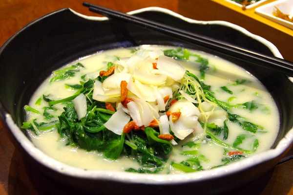 上汤菠菜,点缀枸杞百合
