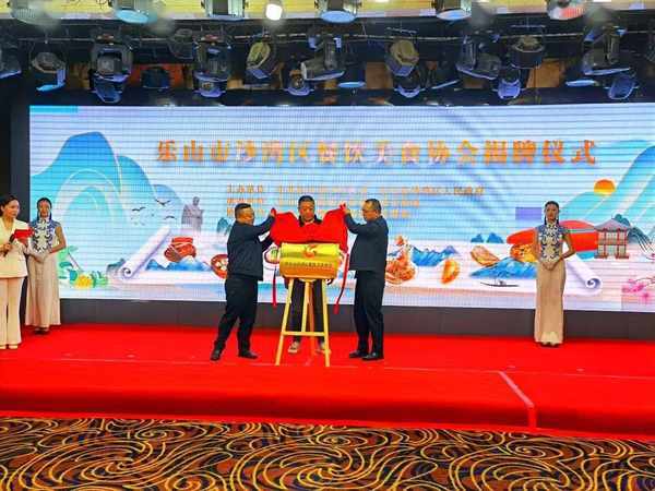 市商务局副局长沈六旬为沙湾区餐饮美食协会揭牌。区委常委、政法委书记帅建,乐山市美食研究院院长祝志高分别致辞。区政府党组成员江立承出席活动。