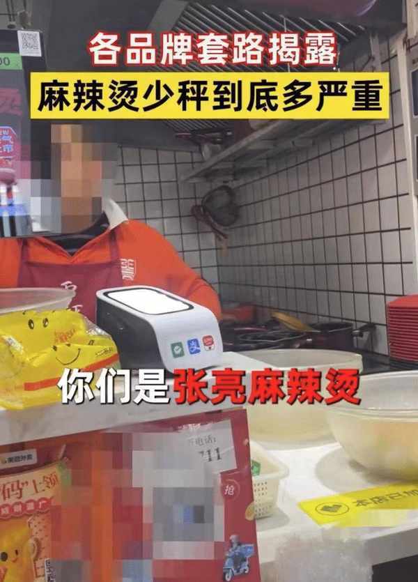 最严重的就是张亮麻辣烫,缺斤少两特别厉害。最厉害的店铺,居然少了二两多。而他们被网红揭发后,马上就将称调回去了然后重新称,并表示刚刚是有水,水多了。