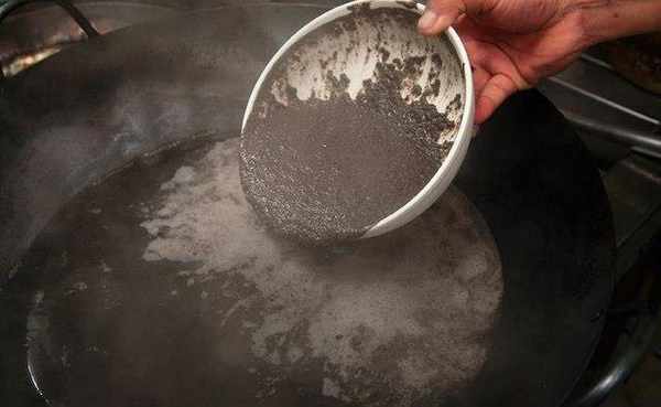 另起新锅开大火,加入1,200cc开水煮滚,倒入黑芝麻泥搅拌均匀。