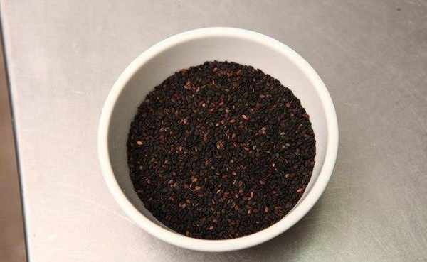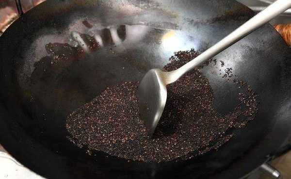 Tips:要炒黑芝麻,因此锅中还是需要些微油量,但油量一多会有苦味,所以用抹的最合适。