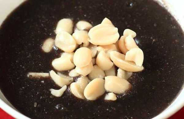 将市售的花生仁加入原本的芝麻糊就可以了。若花生仁带有甜度,建议可先用热水汆烫,一来可使花生仁的口感更为软嫩,二来也能让芝麻糊花生的甜度较为适中。