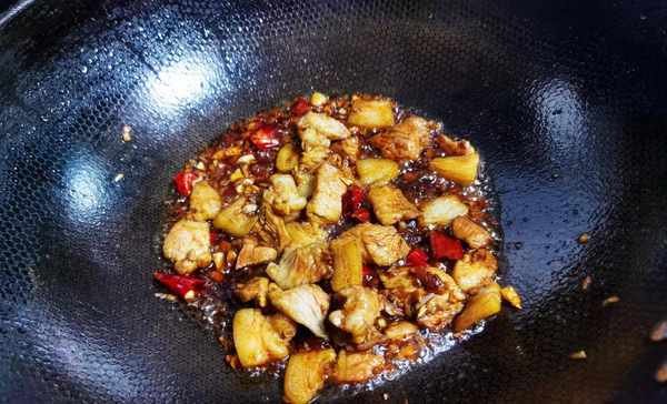 第三步:待五花肉炒好后,接着放入蒜末和干辣椒段,然后再加入一勺料酒、一勺生抽和半勺老抽,再次开大火快速炒出香味,即可。