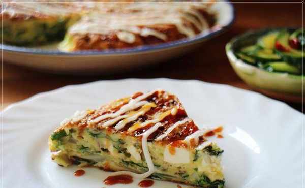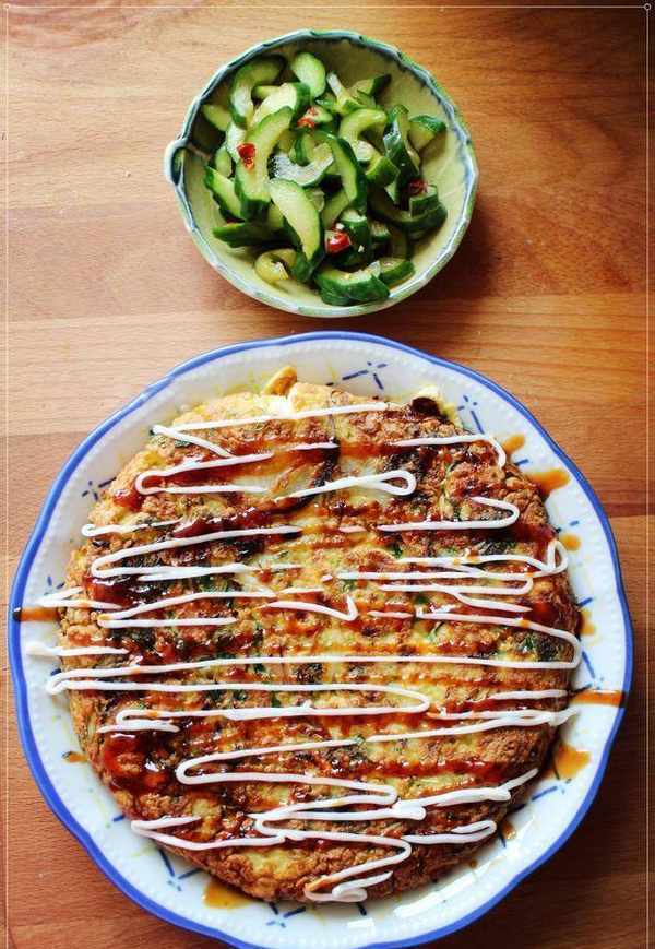 接着欣赏一下断面秀~蔬菜煎饼我常做,这个看似简单的配方却神奇的好吃,我的锅子只有24公分,所以饼煎起来比较厚,意外的让煎饼有丰厚软嫩的口感,尤其是咬到白萝卜的时候,微熟的白萝卜片还保留它特别的呛味,就像吃油质丰富的烟熏鲑鱼生、鱼片、鱼卵.都会搭点生洋葱的道理一样,让这厚实的煎饼一点都不腻口。今天早餐只用食谱上一半的分量来做,儿子吃得不过瘾,要我明天再做一次!