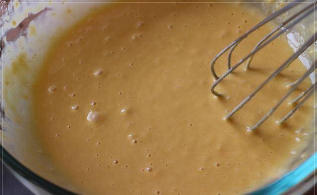 鸡蛋面糊搅拌均匀并调味,以往做煎饼都凭感觉调面糊,有时太浓有时太稀,今天我有乖乖照着食谱量面粉喔!