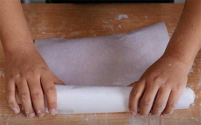 6.拿一张油纸出来,覆盖住表面,然后放到冰箱冷藏一个小时定型。