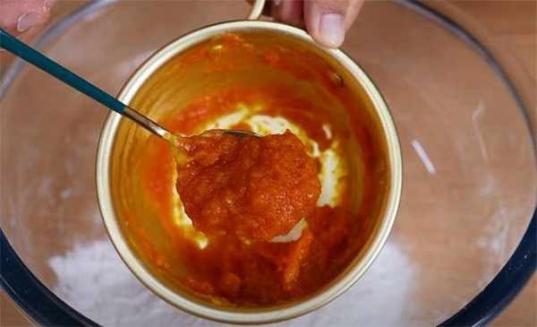 2.按照同样的步骤再和一个南瓜面团,唯一不同的是把牛奶换成了熟的南瓜泥。