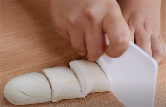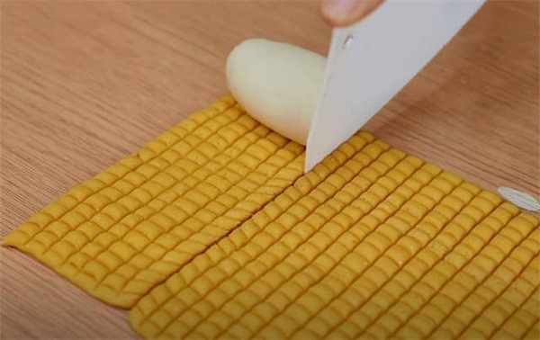 7.搓好之后我们继续用刮板压出纹路,注意底部不要切断。