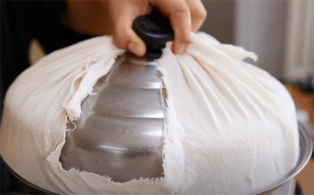 12蒸锅的盖子上面包一层纱布,这样可以确保我们蒸好的馒头表面是光滑的,凉水上锅蒸20分钟。