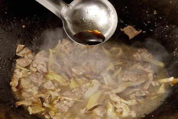 加入鸭肉拌炒均匀,再放入泡过水的切末香菇及米酒,持续拌煮约3分钟至煮出香气,最后加入盐、酱油调味。