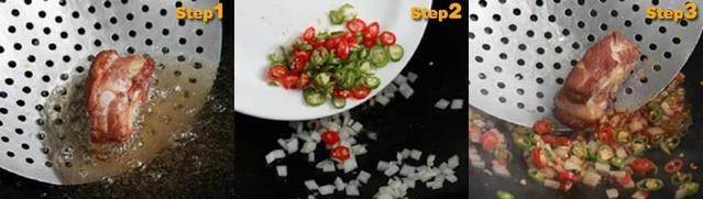 肋排100g、洋葱碎15g、红辣椒片15g、青龙辣椒片15g、豆豉1小匙、蒜碎1小匙