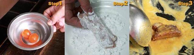 肋排100g、咸蛋黄2颗、葱末5g、太白粉1大匙