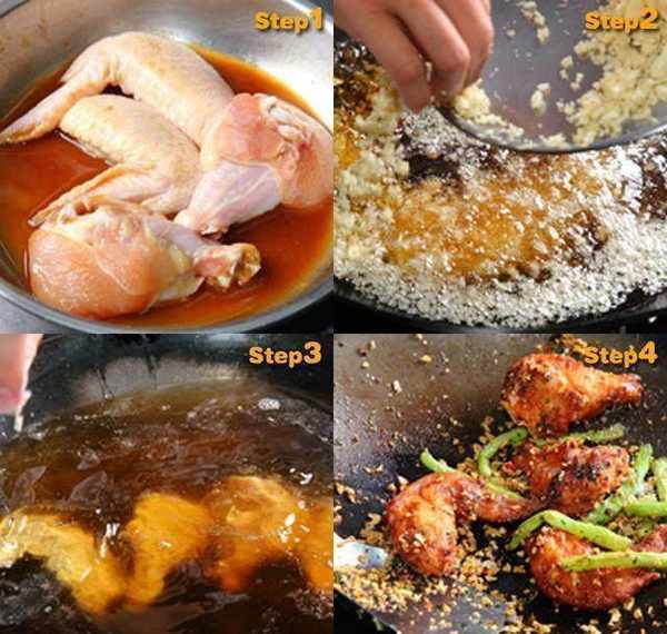 另起一热油锅,将姜末、葱末、辣椒末、豆豉炒香,再加入炸好的鸡翅、四季豆、盐、胡椒粉炒约3分钟后关火,最后加入蒜酥拌匀即完成。