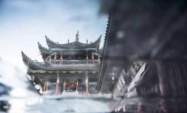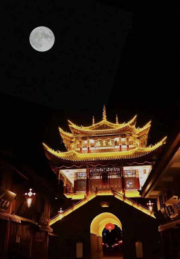 钟鼓楼,又名凌霄楼,画栋雕梁、流光溢彩。它融汇了故宫角楼的部分元素,带有独特的