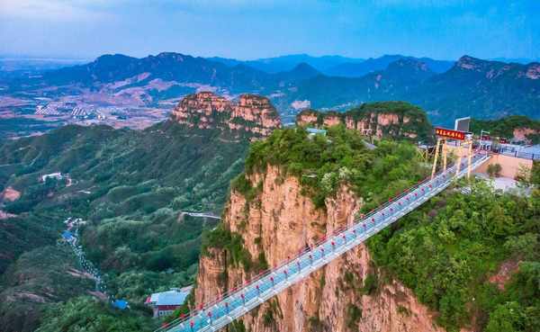 玻璃悬索桥长488米,宽4米,桥面与地面垂直落差约218米。光是看着就已经足够震撼了。