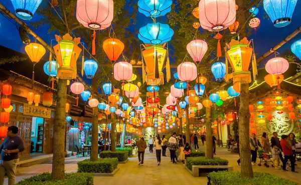 白天喧嚣的古街既有灯火通明,也有夜晚的宁静。