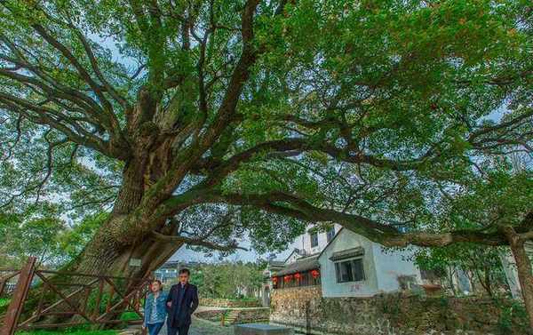 明月湾现存的古建筑数量很多且分布较集中,方便游客游览参观。明月湾村口沿河有古香樟一株,高25米,身材径2米,据说已有千年历史,至今仍非常茂盛生机盎然,让人能非常直观地感受到明月湾的历史文化底蕴。