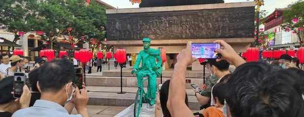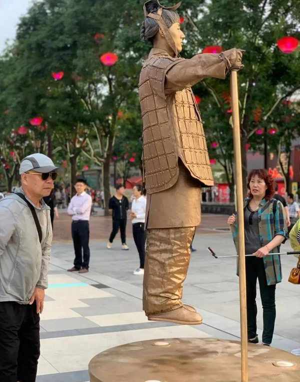,常“以真乱假”被误认成雕塑而走红网络,专程来看他表演的游客络绎不绝。