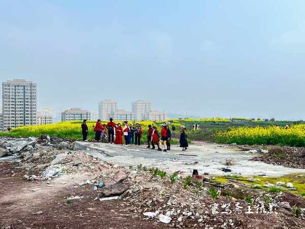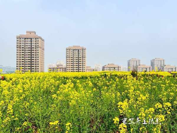 这两个油菜花海都在轨道4号线附近,一个在高石塔站外,另一个在复盛站附近。