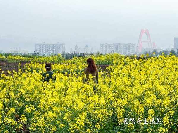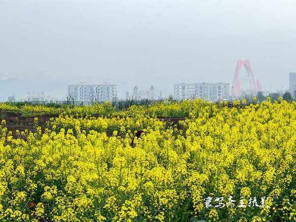 高石塔不远处就是龙兴古镇,从花田里可以远远看到那座“创新大桥”。