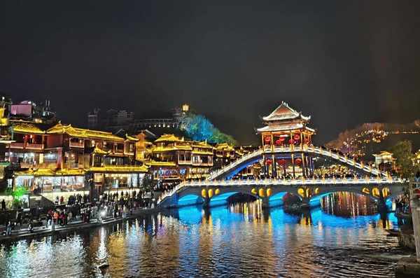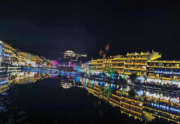 凤凰古城最值得一游的就是它的夜景。依景而打造的灯光秀让整个山城显得异常美丽。我只恨水平有限,手机也不是专业拍照手机,真的很遗憾无法拍出它所有的美丽和壮观。