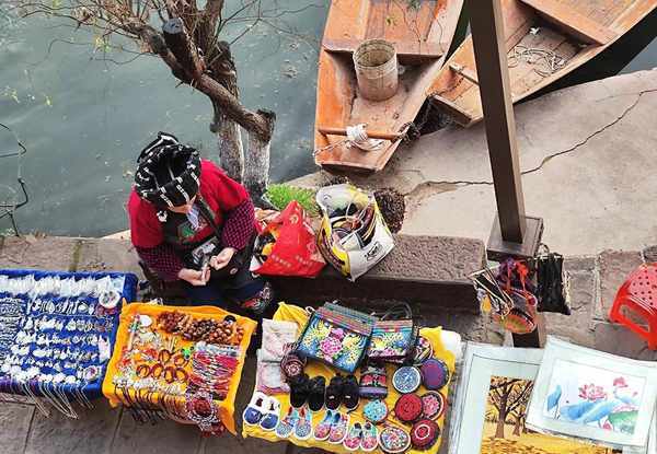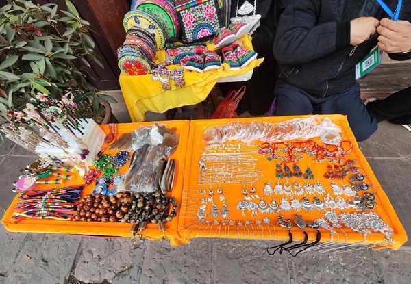 当时已是下午一两点钟,路边有很多卖民族手工艺品的小摊,多是一些银饰品和锈品。