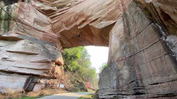 不同于其它古寨,喻家寨在历史上各朝代都有影响力,主要还是与所处位置有关,三面都是百米高的绝壁,唯一通道是寨北的天生石桥,顶高10余米,跨度20余米,桥上可过人,桥下可通车,是古寨子得天独厚的寨门,加上四周悬崖峭壁,构成古寨天然屏障,使得古寨易守难攻。