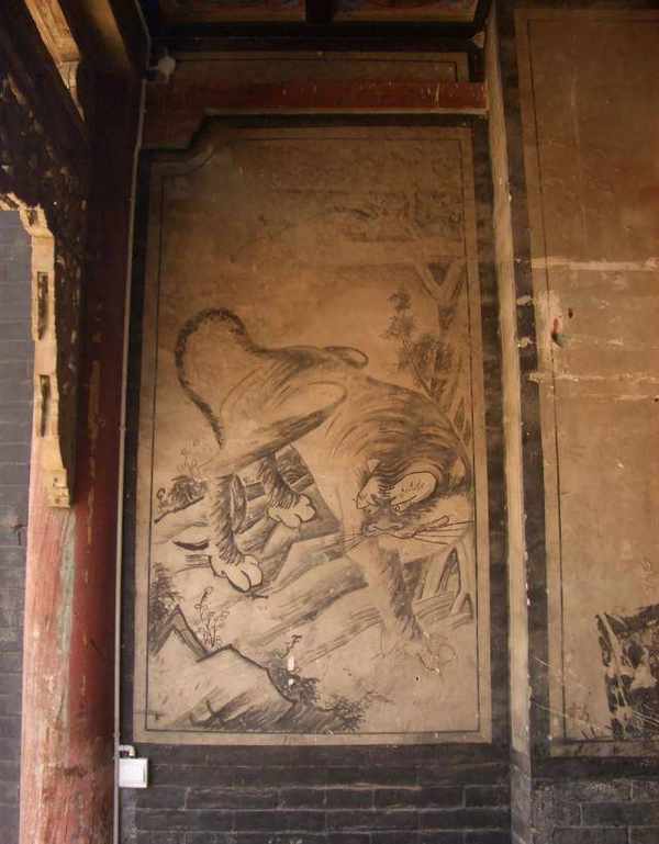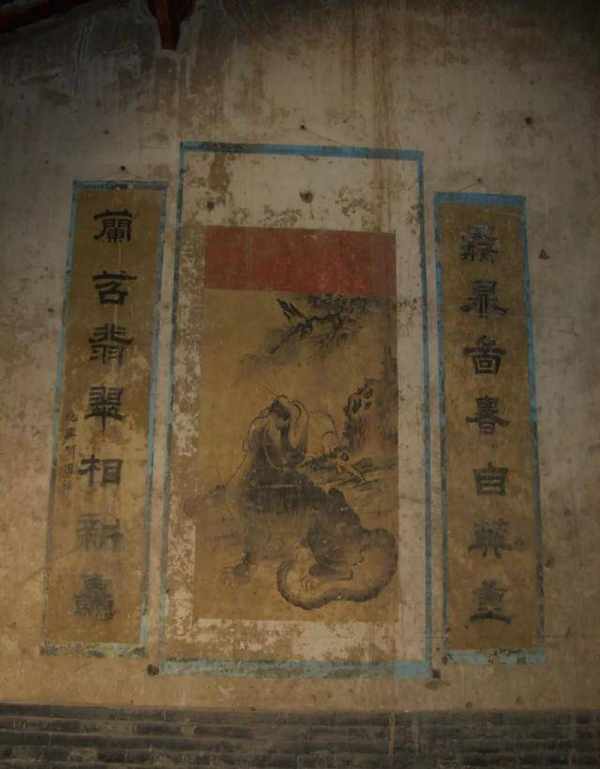 戏台山墙内壁彩绘,多为左绘青龙施雨图,右为白虎登山图,或作中堂对联、条屏字画。安固村关帝庙戏台山墙壁画据说为傅山手笔,可惜被石灰涂盖。