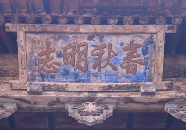 匾额楹联有戏台必有匾额楹联,这是平遥现存明清戏台的又一大特点。戏台附属装饰——匾额楹联给戏台冠以高雅的名称,并展现了娱乐和伦理教化的特殊功能。平遥明清戏台匾额楹联多为书法名家书写,内容丰富多彩,行草隶篆不拘一格,书法价值极高。