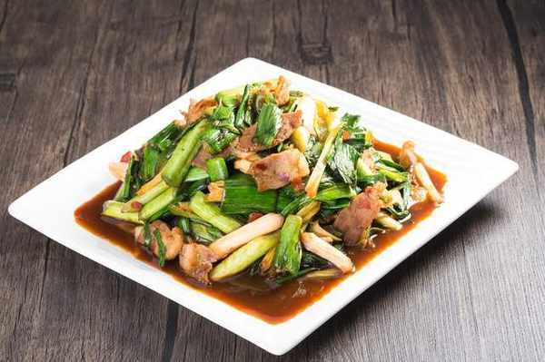 所需食材: 猪肉片适量 蒜苗适量 蒜末适量 盐适量 油适量