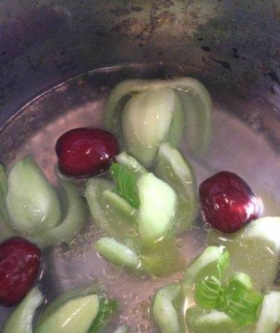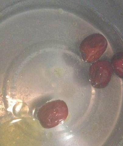 锅内先放红枣,加水煮两分钟,加一点盐和橄榄油