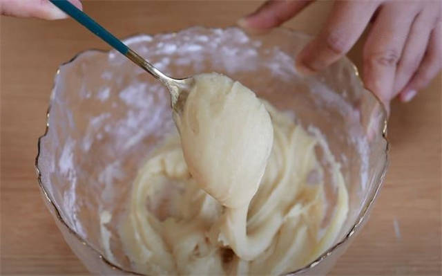 1.先准备200g的普通面粉,40g白糖,和面的时候我们直接用20g的清水,搅匀之后加上20g的食用油,最后揉好的状态就是这种发黏又发软的面团。