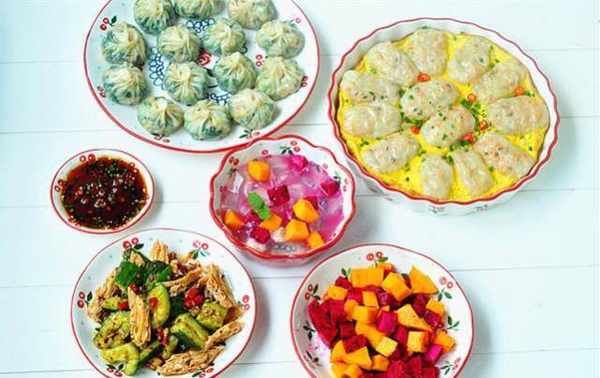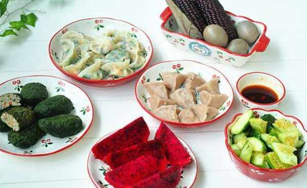 苋菜胡萝卜饺子,晶莹剔透,口感软糯,是夏天最开胃的饺子,三角形的芋饺用芋头和木薯粉混合而成,劲道弹牙口感特别好,芋饺是江浙一带的特色美食,自己在家做其实比包饺子还简单,小朋友和老人家特别喜欢呢,配上蘸酱特别开胃。