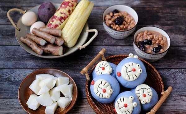 今天的早餐种类不多,但是耗时最多,早上现蒸馒头,发酵的时间比较长,加上造型,整整用了两个小时,不过还好,现在天亮得比较早,五点半起床,时间还是比较充裕的,杂粮鸡蛋一锅就可以蒸出来,底下煮花生红枣补血粥,下面煮上面蒸,挺方便的,机器猫馒头深得小朋友喜欢,详细做法,可以点开我的头像,前面有详细的菜谱介绍哦。