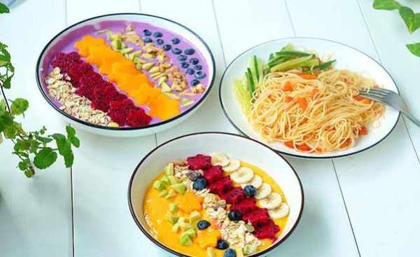 夏天炎热,适合多吃水果蔬菜,这段时间孩子在家里,我家的水果每天都没断过,早上起床,尤其喜欢吃些汤汤水水,今天的早上主打果昔,紫色的是紫薯酸奶果昔,紫薯蒸熟后加入酸奶调匀即可,上面用自己喜欢的水果和坚果装饰,黄色的是芒果果昔,芒果泥加上酸奶调成,做果昔的酸奶要用老酸奶,才会有浓稠的口感,别看这小小的一碗,饱腹感超强,一个紫薯加上一杯酸奶,一上午都不会饿呢,儿子喜欢吃意大利面,意面水煮后捞出来,西红柿末炒至出沙后加入意面拌匀调味,再撒入黄瓜丝拌好即可。