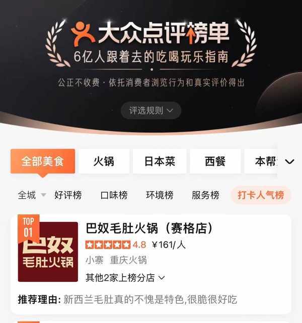 相关点评平台显示,从2月的“18元5片土豆”事件发生后,截至3月9日,涉事门店巴奴西安赛格店,已成为美团点评西安全城美食打卡人气榜榜首。有媒体报道,西安其他门店线下排队也持续火爆。