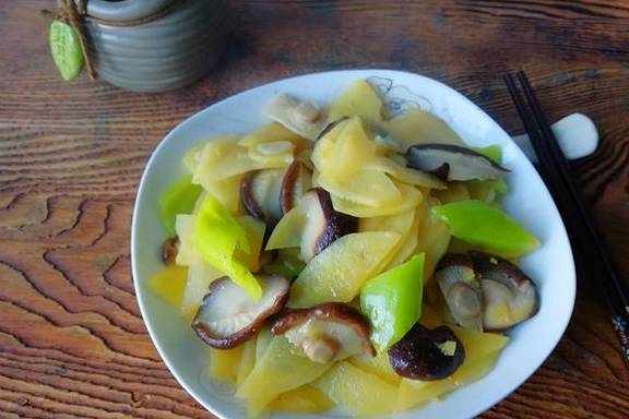 土豆是家里餐桌上最平常不过的食材了,吃土豆的好处多多,食用土豆后,停留在肠道中的时间比米饭长的多,所以更具有饱腹感,同时还能帮助带走一些油脂和垃圾,具有一定的通便排毒作用。香菇是具有高蛋白、低脂肪、多糖、多种氨基酸和多种维生素的菌类食物。香菇中还含有一种抗病毒的干扰素诱发剂,能提高人体抗病能力,可预防流行性感冒等,香菇中含有嘌呤、胆碱、酪氨酸、氧化酶以及某些核酸物质,能起到降血压、降胆固醇、降血脂的作用,又可预防动脉硬化、肝硬化等疾病。将这两种食材放在一起炒,清爽不油腻,最适合春季吃了,助消化,抗病毒,还有瘦身作用,你也做给家人吃吧