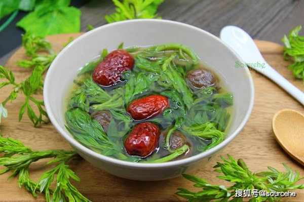 【红枣桂圆煮艾叶】春天的艾叶鲜嫩,摘些回家加红枣、桂圆、红糖、生姜,煮,暖心暖胃,女生很多时候喝一碗。制作方法,1.新鲜的艾叶,挑选嫩叶、清洗干净。水煮沸焯水,把艾叶的苦去掉。2.生姜去洗,切丝,红枣清洗干净去核,桂圆去壳、去核。3.锅里倒入适量的水,放生姜、红枣、桂圆,煮沸之后,放红糖、艾叶,煮熟就可以吃了。